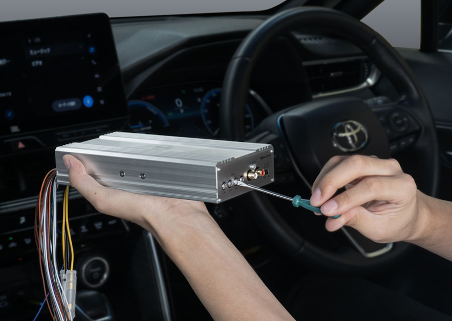 今回の製品はあえてアナログで完結し、初期設定から「もう少し低音が欲しい」と感じればこのアンプに付いているドアスピーカーやウーファーのダイヤルを回せばよく、「もう少し高音が……」と思えばツイーターのダイヤルを回せばよいという作りになっています。ユーザーさんに気楽に音楽の変化を楽しんでほしい、遊んでほしい、との考えから今回はDSPを使用しないという方法を取りました。